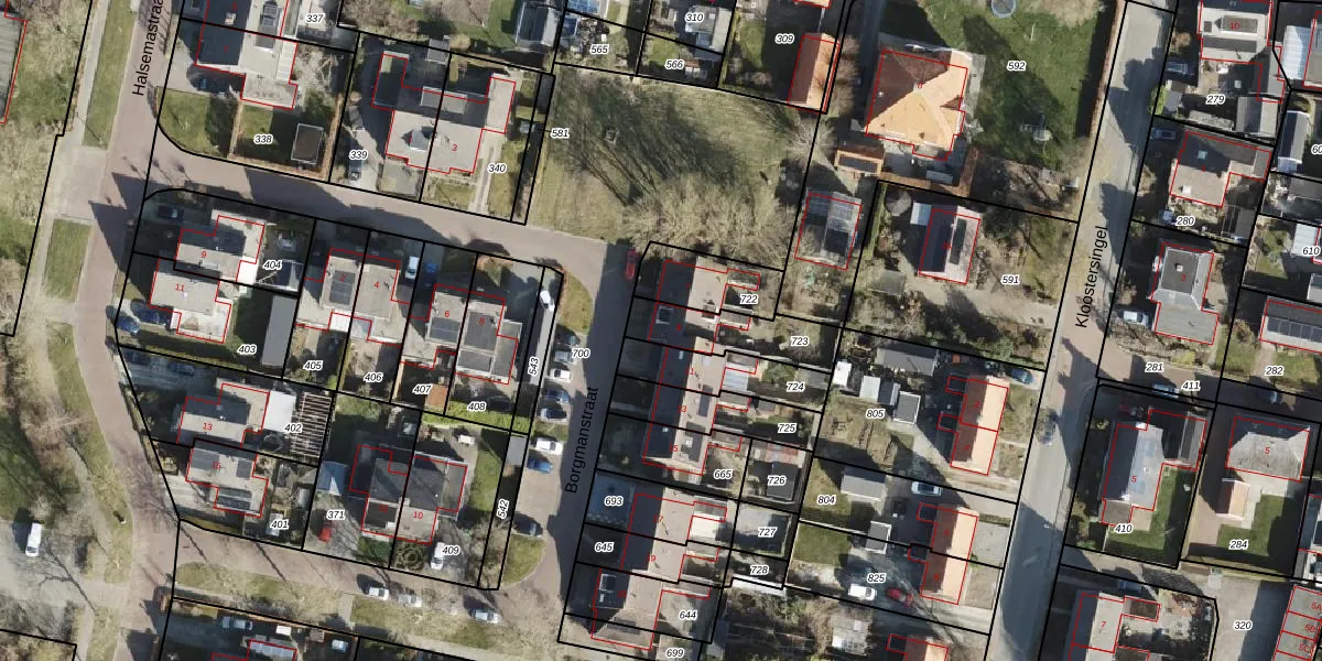 Borgmanstraat 9 is gelegen op kadastraal perceel KTB00E723. Deze kadastrale aanduiding is uniek en wordt gebruikt door het Kadaster om eigendomsrechten en andere zakelijke rechten vast te leggen. Het perceel maakt onderdeel uit van de kadastrale gemeente Kloosterburen.