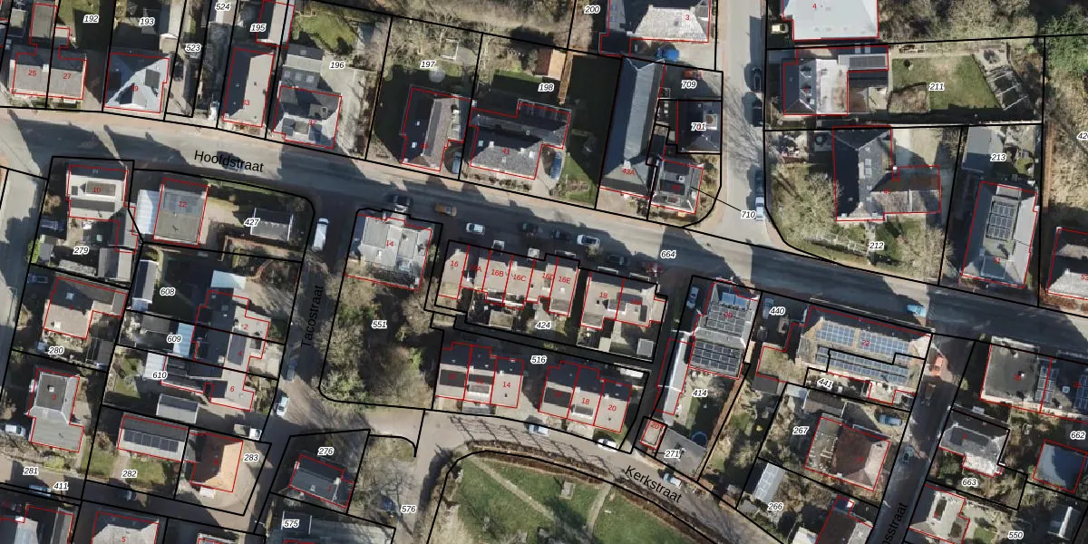 Het perceel waarop Hoofdstraat 16-D staat heeft een oppervlakte van 580 m². Dit is een groot perceel. De perceeloppervlakte wordt geregistreerd door het Kadaster. Gedetailleerde informatie over de maten van dit perceel kunt u vinden in het rapport Kadastrale kaart met maatvoering van Hoofdstraat 16-D.