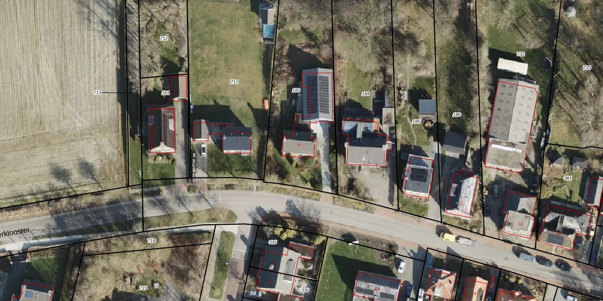 Het adres ligt op het perceel KTB00-E-183, dat zich in de kadastrale gemeente Kloosterburen bevindt. Het perceel is kleiner dan gemiddeld in Kloosterburen. Het perceel is 1350 m² groot, terwijl het gemiddelde ligt op 4,0 ha. Het grootste perceel in de kadastrale gemeente is 28,13 km². Het kleinste perceel heeft een oppervlakte van 1 m². Er zijn geen andere adressen aanwezig op het perceel. De huidige grenzen van het perceel zijn digitaal in de Basisregistratie Kadaster (BRK) geregistreerd op 29-09-2005.