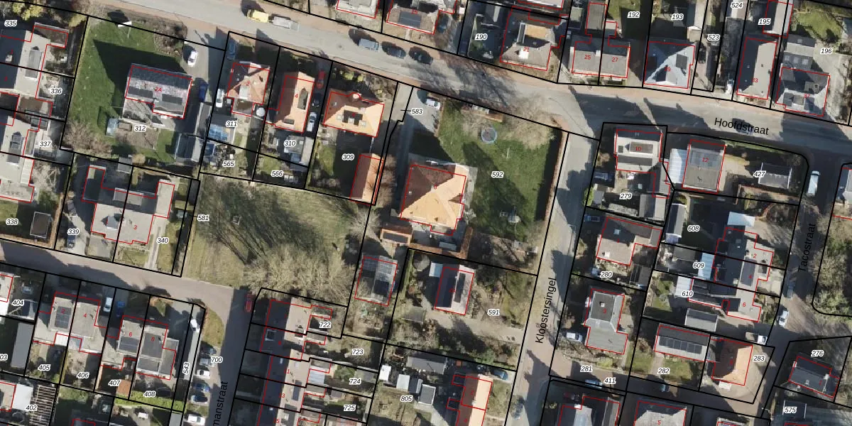 Hoofdstraat 8 is gelegen op kadastraal perceel KTB00E592. Deze kadastrale aanduiding is uniek en wordt gebruikt door het Kadaster om eigendomsrechten en andere zakelijke rechten vast te leggen. Het perceel maakt onderdeel uit van de kadastrale gemeente Kloosterburen.
