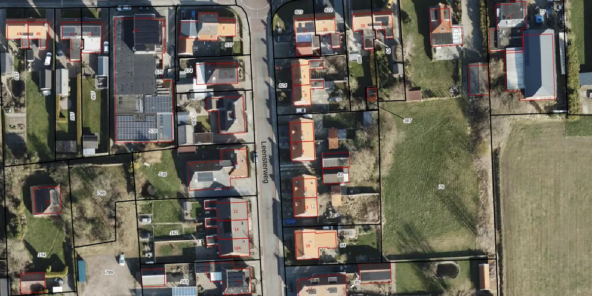 Het perceel waarop Leensterweg 9 staat heeft een oppervlakte van 1290 m². Dit is een zeer groot perceel. De perceeloppervlakte wordt geregistreerd door het Kadaster. Gedetailleerde informatie over de maten van dit perceel kunt u vinden in het rapport Kadastrale kaart met maatvoering van Leensterweg 9.