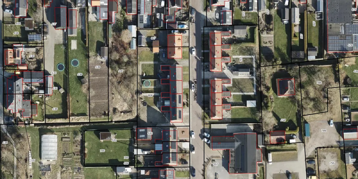 Het perceel waarop Lewestraat 10 staat heeft een oppervlakte van 1289 m². Dit is een zeer groot perceel. De perceeloppervlakte wordt geregistreerd door het Kadaster. Gedetailleerde informatie over de maten van dit perceel kunt u vinden in het rapport Kadastrale kaart met maatvoering van Lewestraat 10.