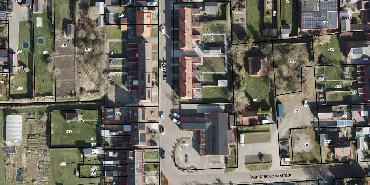 Het perceel waarop Lewestraat 11 staat heeft een oppervlakte van 1690 m². Dit is een zeer groot perceel. De perceeloppervlakte wordt geregistreerd door het Kadaster. Gedetailleerde informatie over de maten van dit perceel kunt u vinden in het rapport Kadastrale kaart met maatvoering van Lewestraat 11.