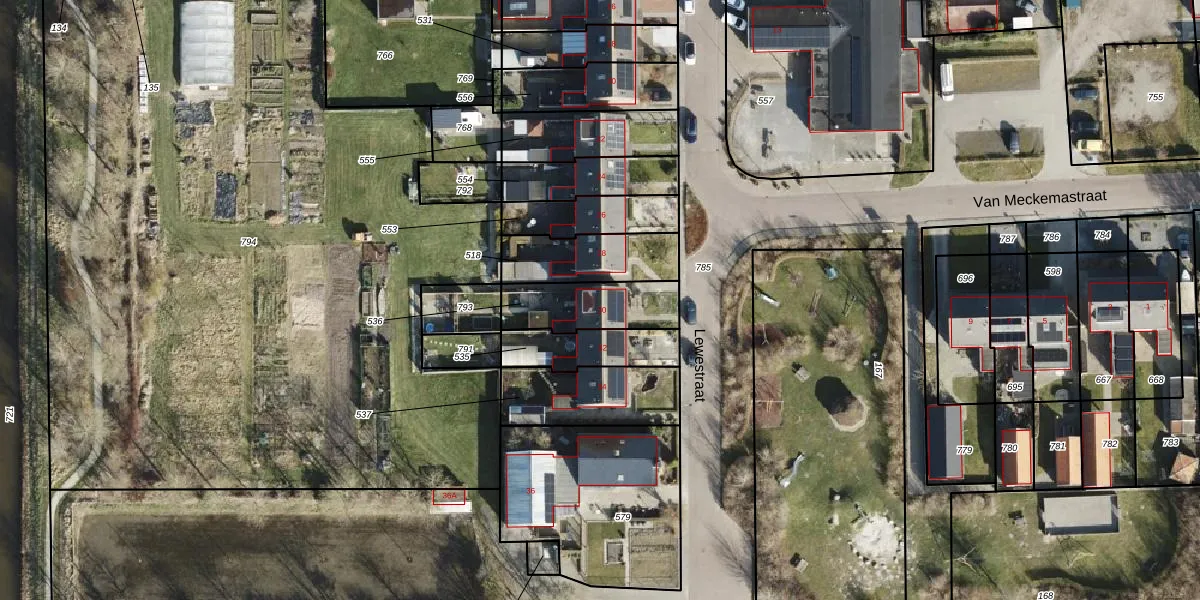 Het perceel waarop Lewestraat 30 staat heeft een oppervlakte van 233 m². Dit is een middelgroot perceel. De perceeloppervlakte wordt geregistreerd door het Kadaster. Gedetailleerde informatie over de maten van dit perceel kunt u vinden in het rapport Kadastrale kaart met maatvoering van Lewestraat 30.
