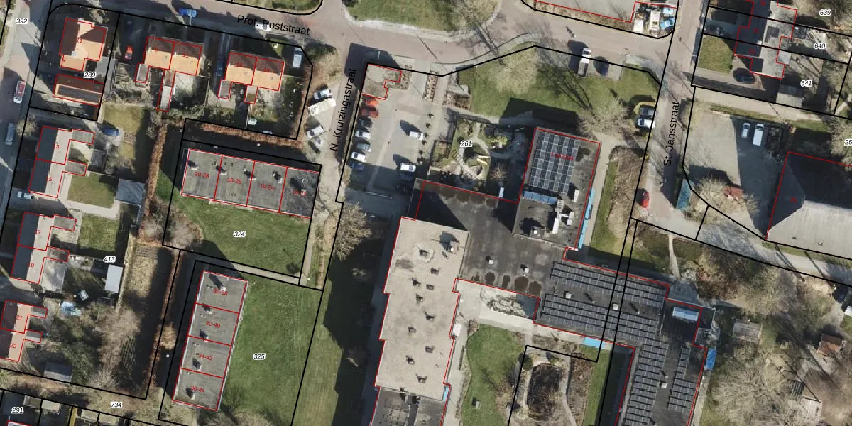 Het perceel waarop Prof. Poststraat 1-K-009 staat heeft een oppervlakte van 7380 m². Dit is een zeer groot perceel. De perceeloppervlakte wordt geregistreerd door het Kadaster. Gedetailleerde informatie over de maten van dit perceel kunt u vinden in het rapport Kadastrale kaart met maatvoering van Prof. Poststraat 1-K-009.