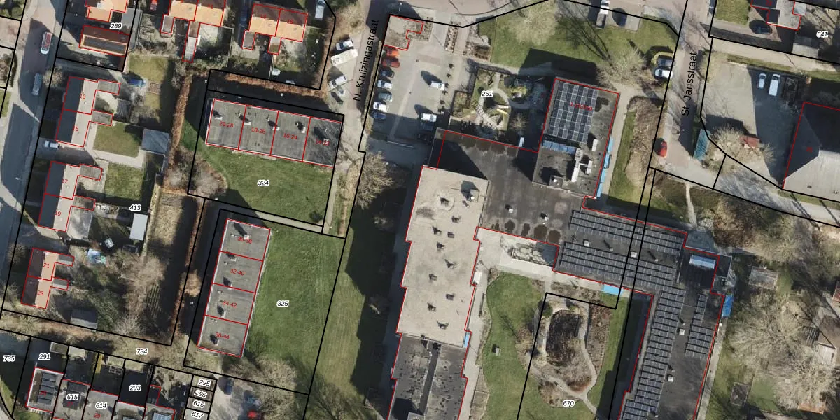 Het perceel waarop Prof. Poststraat 1-K-013 staat heeft een oppervlakte van 7380 m². Dit is een zeer groot perceel. De perceeloppervlakte wordt geregistreerd door het Kadaster. Gedetailleerde informatie over de maten van dit perceel kunt u vinden in het rapport Kadastrale kaart met maatvoering van Prof. Poststraat 1-K-013.