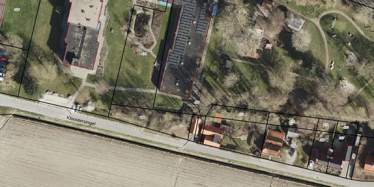 Het adres ligt op het perceel KTB00-E-574, dat zich in de kadastrale gemeente Kloosterburen bevindt. Het perceel is 8947 m² groot. Dat is kleiner dan de gemiddelde perceeloppervlakte in Kloosterburen, dat op 4,0 ha ligt. Het grootste perceel in de kadastrale gemeente is 28,13 km². Het kleinste perceel heeft een oppervlakte van 1 m². Op het perceel liggen in totaal 12 adressen. De huidige grenzen van het perceel zijn digitaal in de Basisregistratie Kadaster (BRK) geregistreerd op 14-11-2002.