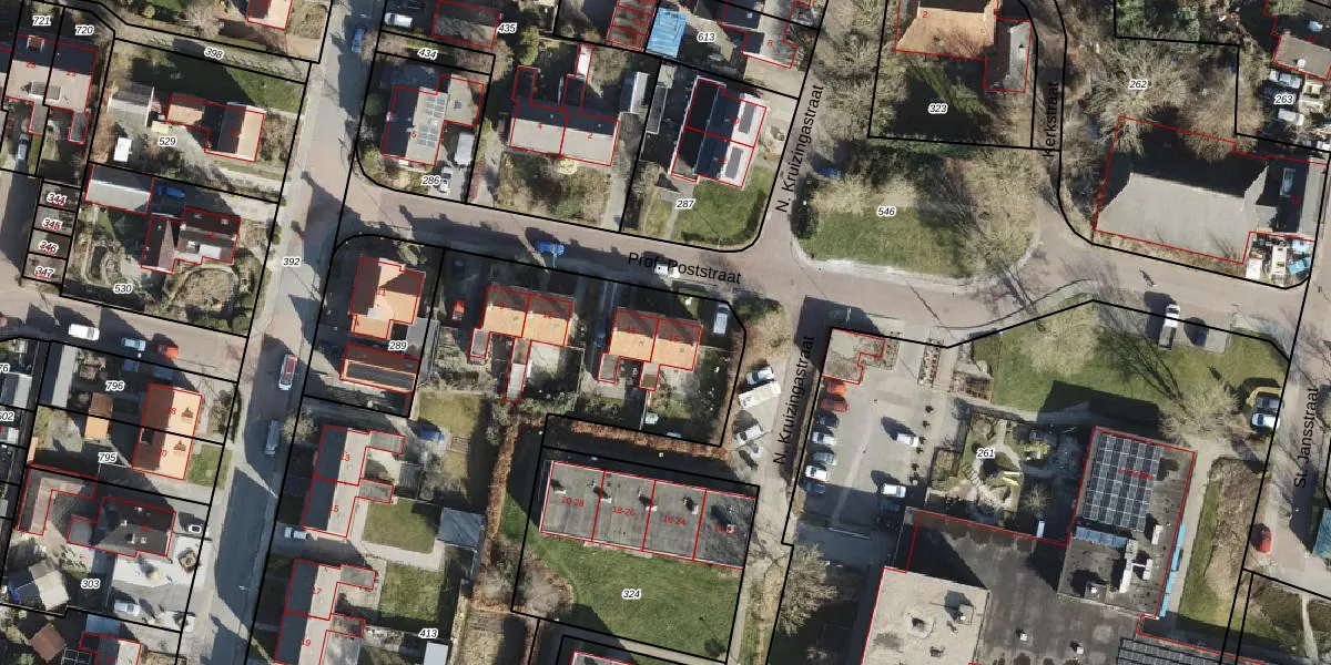 Prof. Poststraat 15 is gelegen op kadastraal perceel KTB00E413. Deze kadastrale aanduiding is uniek en wordt gebruikt door het Kadaster om eigendomsrechten en andere zakelijke rechten vast te leggen. Het perceel maakt onderdeel uit van de kadastrale gemeente Kloosterburen.