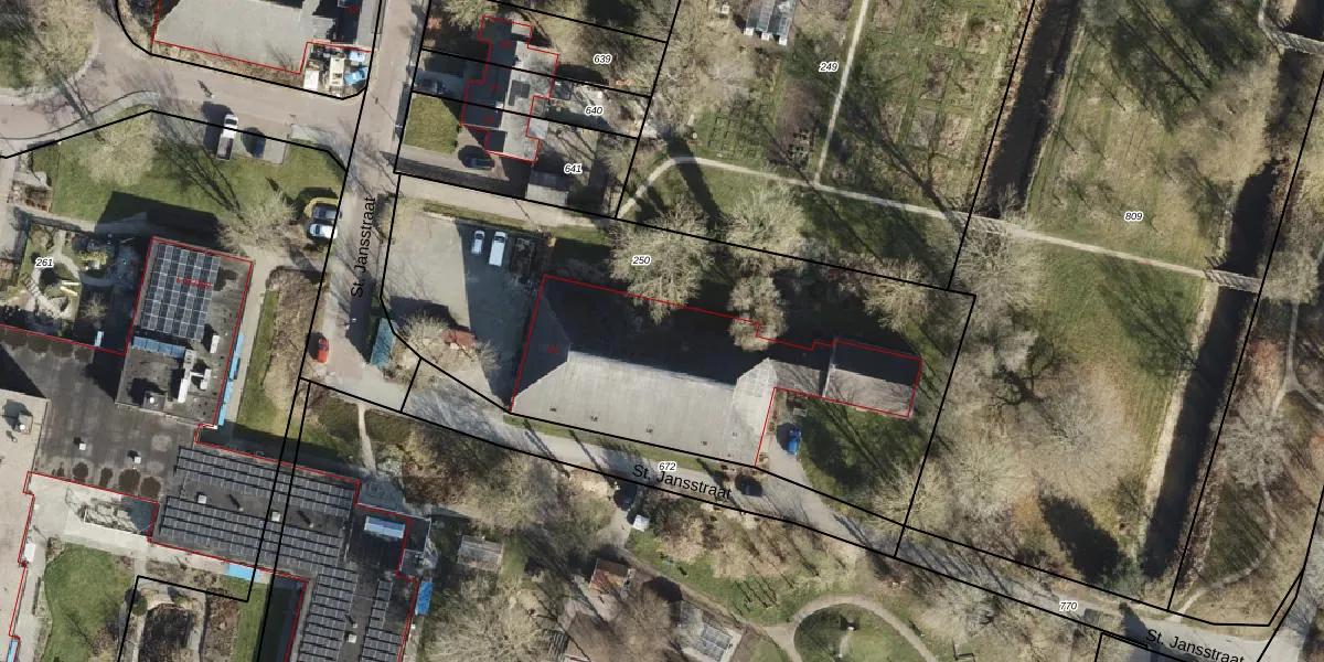 Het perceel waarop St. Jansstraat 25 staat heeft een oppervlakte van 2720 m². Dit is een zeer groot perceel. De perceeloppervlakte wordt geregistreerd door het Kadaster. Gedetailleerde informatie over de maten van dit perceel kunt u vinden in het rapport Kadastrale kaart met maatvoering van St. Jansstraat 25.