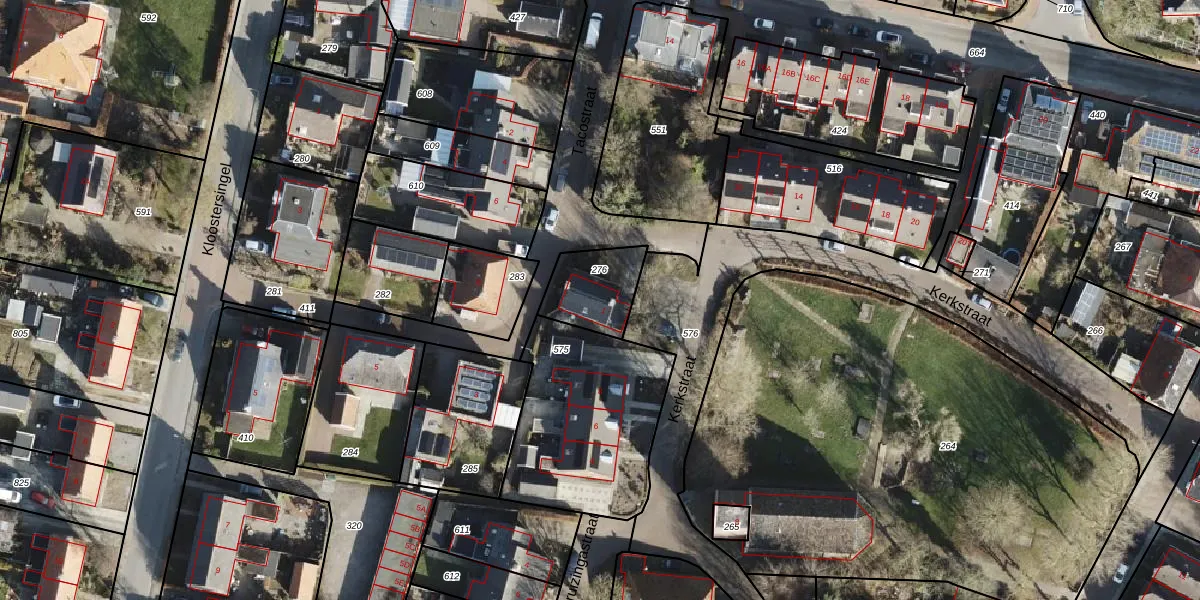 Tacostraat 1 is gelegen op kadastraal perceel KTB00E276. Deze kadastrale aanduiding is uniek en wordt gebruikt door het Kadaster om eigendomsrechten en andere zakelijke rechten vast te leggen. Het perceel maakt onderdeel uit van de kadastrale gemeente Kloosterburen.