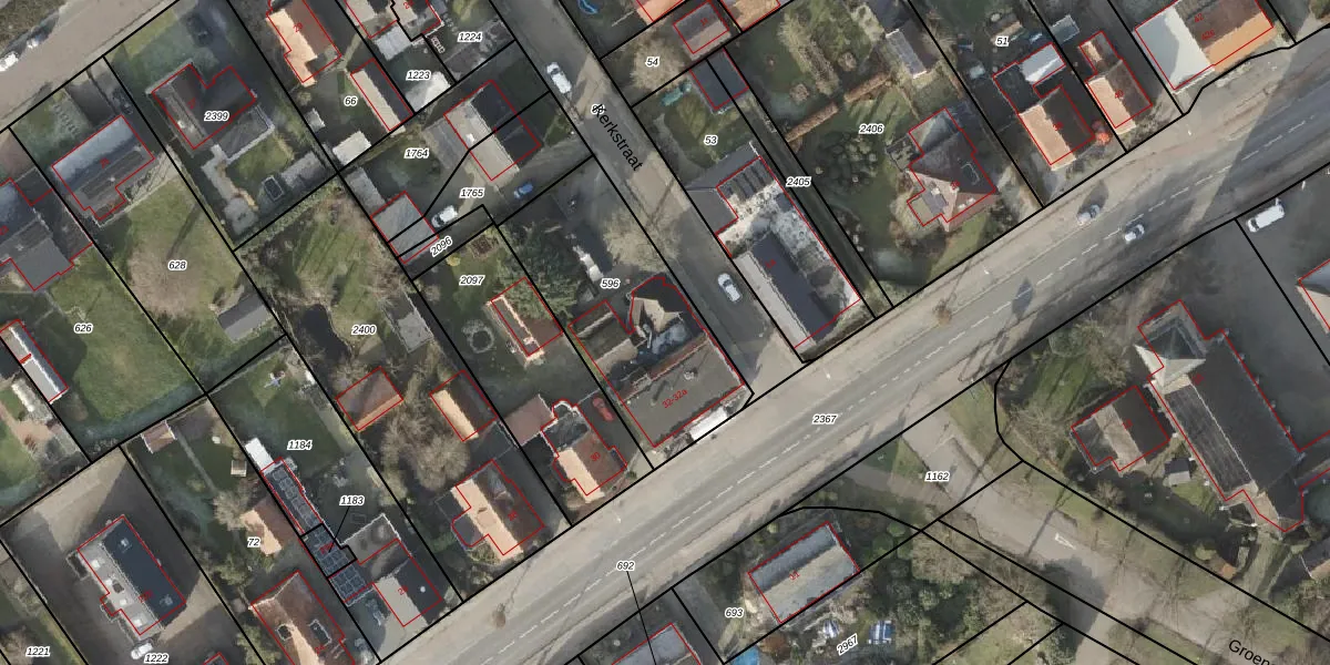 Het perceel waarop het adres ligt is HDB01-T-596. De afkorting 'HDB01' staat voor kadastrale gemeente Ambt-Hardenberg. Het perceel is kleiner dan gemiddeld in Ambt-Hardenberg. Het perceel is 805 m² groot, terwijl het gemiddelde ligt op 7433,75 m². De grootste perceeloppervlakte in de kadastrale gemeente is 1,91 km². De kleinste oppervlakte bedraagt 0 m². Er zijn 2 adressen aanwezig op het perceel. De huidige grenzen van het perceel zijn digitaal in de Basisregistratie Kadaster (BRK) geregistreerd op 03-07-2007.