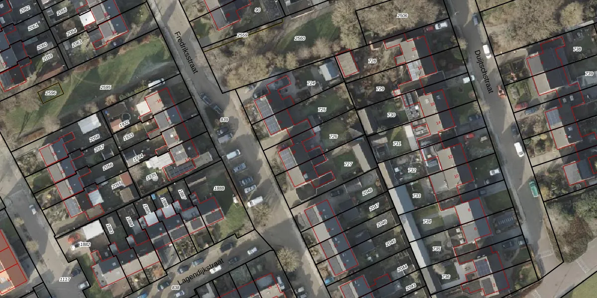 Gebruik de zoekbalk of klik op een perceel voor informatie over de adressen binnen dit perceel.