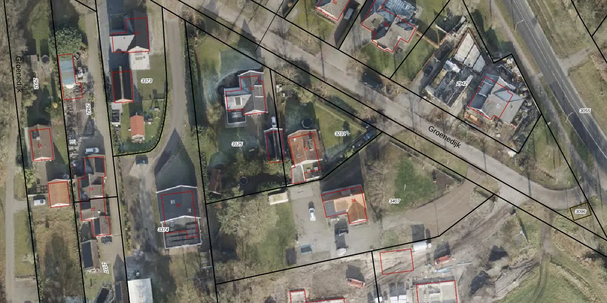 Groenedijk 34 is gelegen op kadastraal perceel VZV00C3231. Deze kadastrale aanduiding is uniek en wordt gebruikt door het Kadaster om eigendomsrechten en andere zakelijke rechten vast te leggen. Het perceel maakt onderdeel uit van de kadastrale gemeente Vriezenveen.