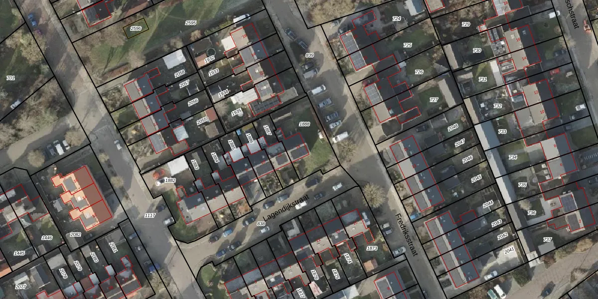 Het perceel waarop Lagendijkstraat 14 staat heeft een oppervlakte van 360 m². Dit is een groot perceel. De perceeloppervlakte wordt geregistreerd door het Kadaster. Gedetailleerde informatie over de maten van dit perceel kunt u vinden in het rapport Kadastrale kaart met maatvoering van Lagendijkstraat 14.