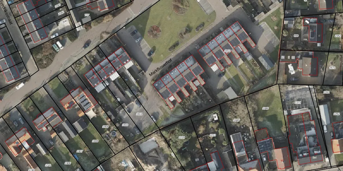 Het perceel waarop Markfluwerhof 2 staat heeft een oppervlakte van 7070 m². Dit is een zeer groot perceel. De perceeloppervlakte wordt geregistreerd door het Kadaster. Gedetailleerde informatie over de maten van dit perceel kunt u vinden in het rapport Kadastrale kaart met maatvoering van Markfluwerhof 2.