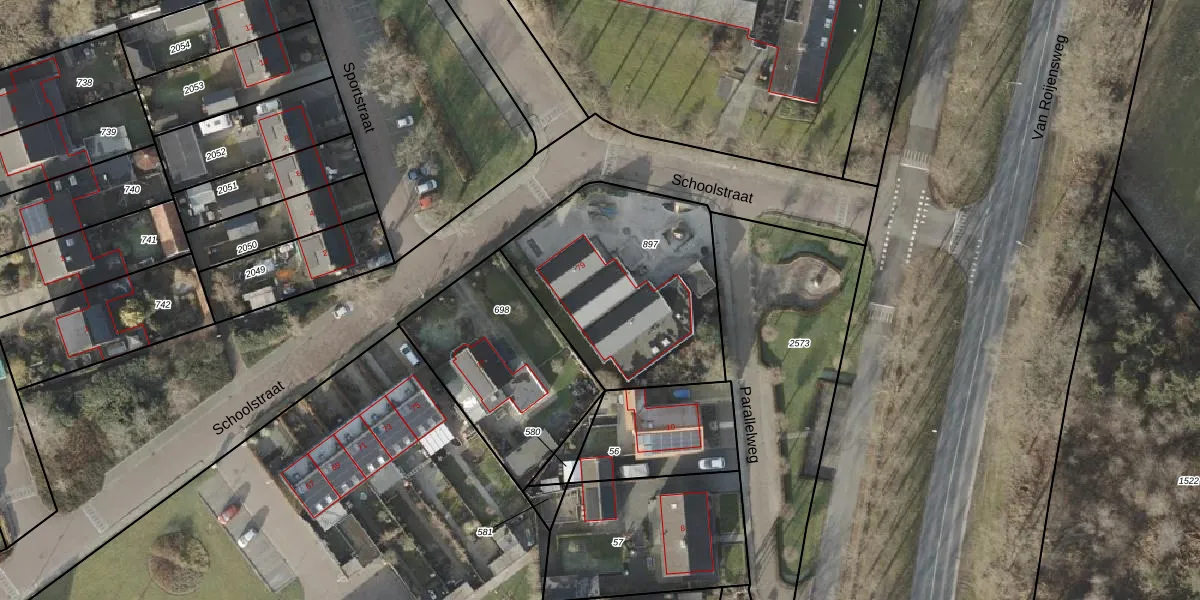 Het perceel waarop Schoolstraat 79 staat heeft een oppervlakte van 938 m². Dit is een groot perceel. De perceeloppervlakte wordt geregistreerd door het Kadaster. Gedetailleerde informatie over de maten van dit perceel kunt u vinden in het rapport Kadastrale kaart met maatvoering van Schoolstraat 79.