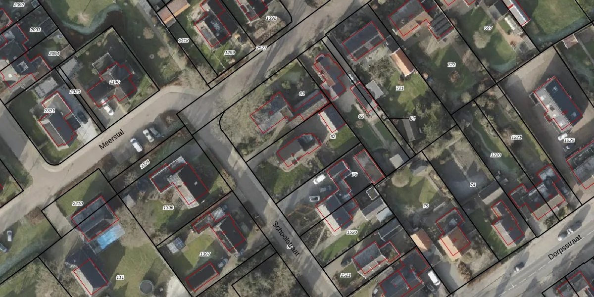 Het perceel waarop Schoolstraat 9 staat heeft een oppervlakte van 610 m². Dit is een groot perceel. De perceeloppervlakte wordt geregistreerd door het Kadaster. Gedetailleerde informatie over de maten van dit perceel kunt u vinden in het rapport Kadastrale kaart met maatvoering van Schoolstraat 9.
