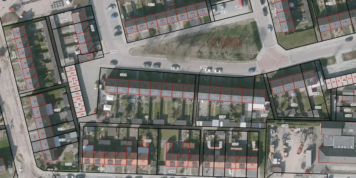 Het perceel waarop Anjerstraat 24 staat heeft een oppervlakte van 1661 m². Dit is een zeer groot perceel. De perceeloppervlakte wordt geregistreerd door het Kadaster. Gedetailleerde informatie over de maten van dit perceel kunt u vinden in het rapport Kadastrale kaart met maatvoering van Anjerstraat 24.