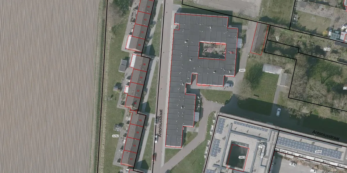 Antoniusstraat 13 is gelegen op kadastraal perceel HTN01H3482. Deze kadastrale aanduiding is uniek en wordt gebruikt door het Kadaster om eigendomsrechten en andere zakelijke rechten vast te leggen. Het perceel maakt onderdeel uit van de kadastrale gemeente Hontenisse.