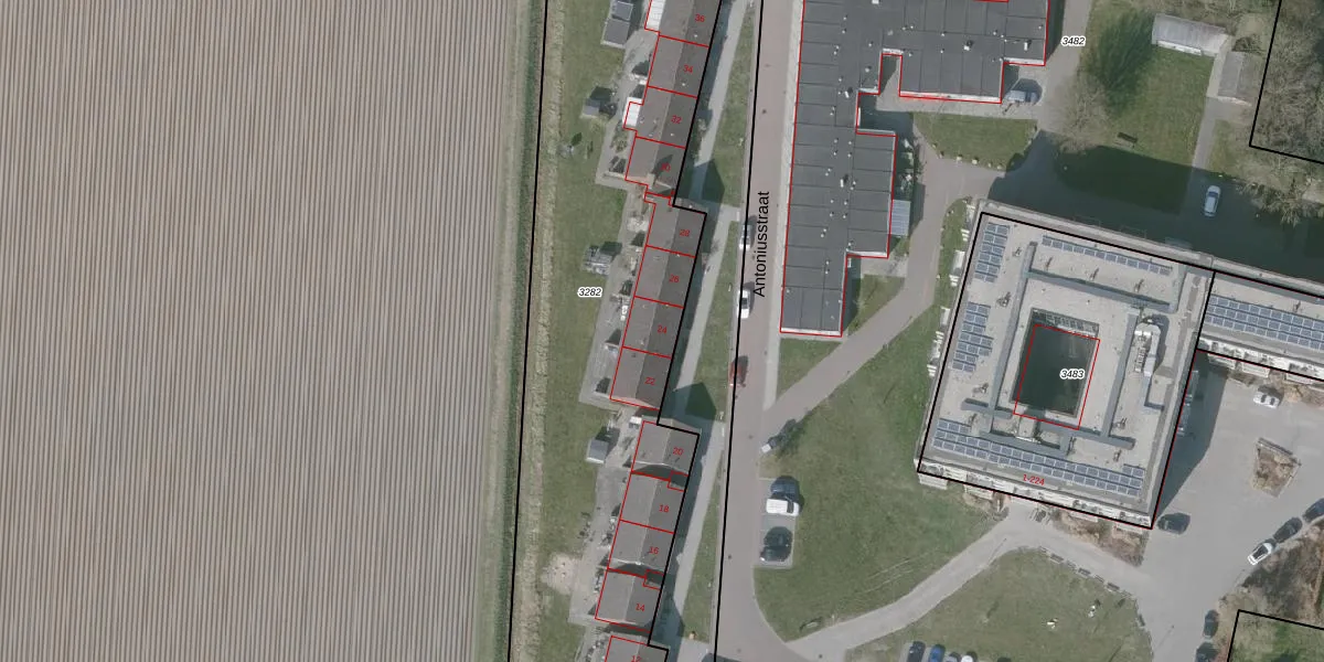 Het perceel waarop Antoniusstraat 24 staat heeft een oppervlakte van 4785 m². Dit is een zeer groot perceel. De perceeloppervlakte wordt geregistreerd door het Kadaster. Gedetailleerde informatie over de maten van dit perceel kunt u vinden in het rapport Kadastrale kaart met maatvoering van Antoniusstraat 24.