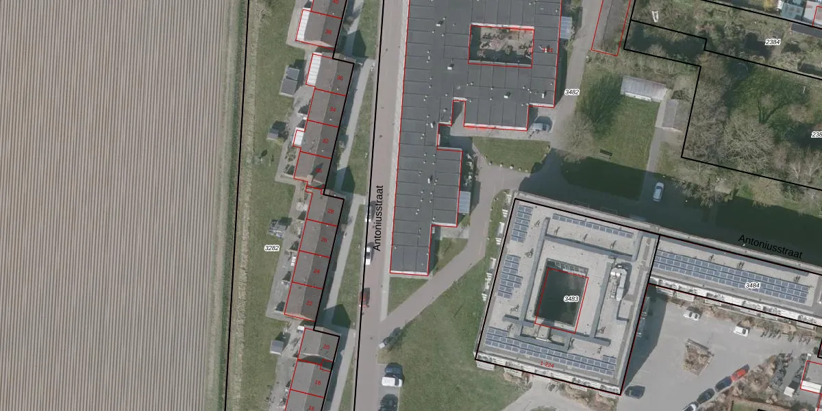 Het perceel waarop Antoniusstraat 9 staat heeft een oppervlakte van 1,3 ha. Dit is een zeer groot perceel. De perceeloppervlakte wordt geregistreerd door het Kadaster. Gedetailleerde informatie over de maten van dit perceel kunt u vinden in het rapport Kadastrale kaart met maatvoering van Antoniusstraat 9.