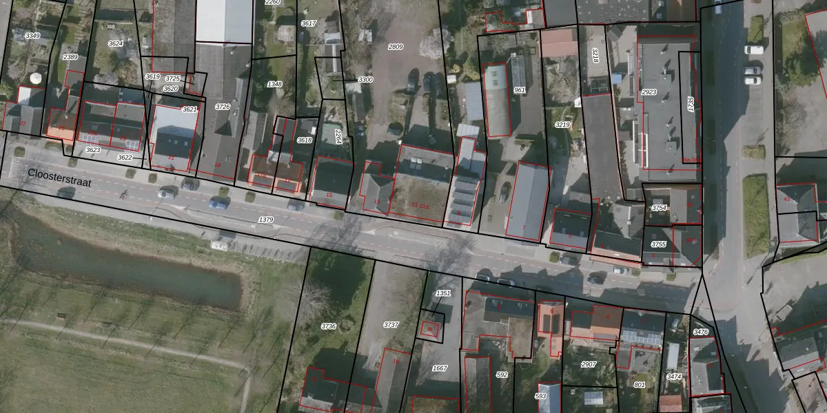Het perceel waarop Cloosterstraat 11-a staat heeft een oppervlakte van 1649 m². Dit is een zeer groot perceel. De perceeloppervlakte wordt geregistreerd door het Kadaster. Gedetailleerde informatie over de maten van dit perceel kunt u vinden in het rapport Kadastrale kaart met maatvoering van Cloosterstraat 11-a.