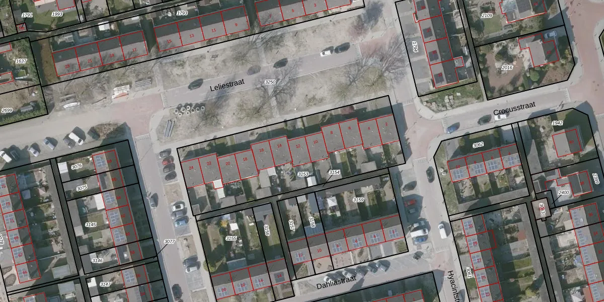 Leliestraat 12 is gelegen op kadastraal perceel HTN01H3153. Deze kadastrale aanduiding is uniek en wordt gebruikt door het Kadaster om eigendomsrechten en andere zakelijke rechten vast te leggen. Het perceel maakt onderdeel uit van de kadastrale gemeente Hontenisse.