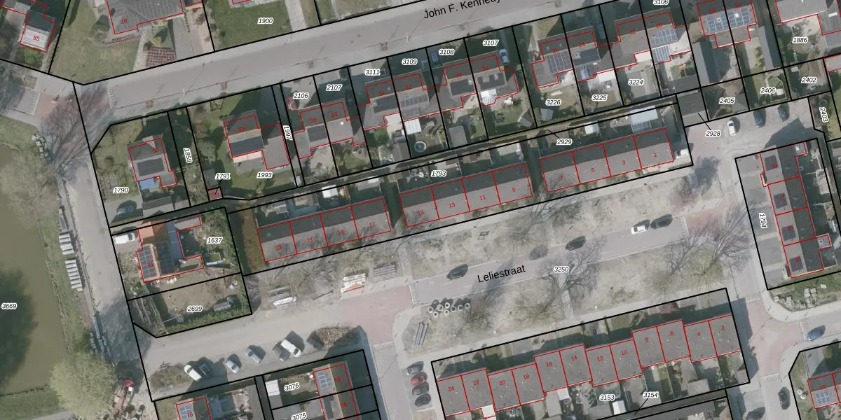 Het perceel waarop Leliestraat 15 staat heeft een oppervlakte van 1689 m². Dit is een zeer groot perceel. De perceeloppervlakte wordt geregistreerd door het Kadaster. Gedetailleerde informatie over de maten van dit perceel kunt u vinden in het rapport Kadastrale kaart met maatvoering van Leliestraat 15.