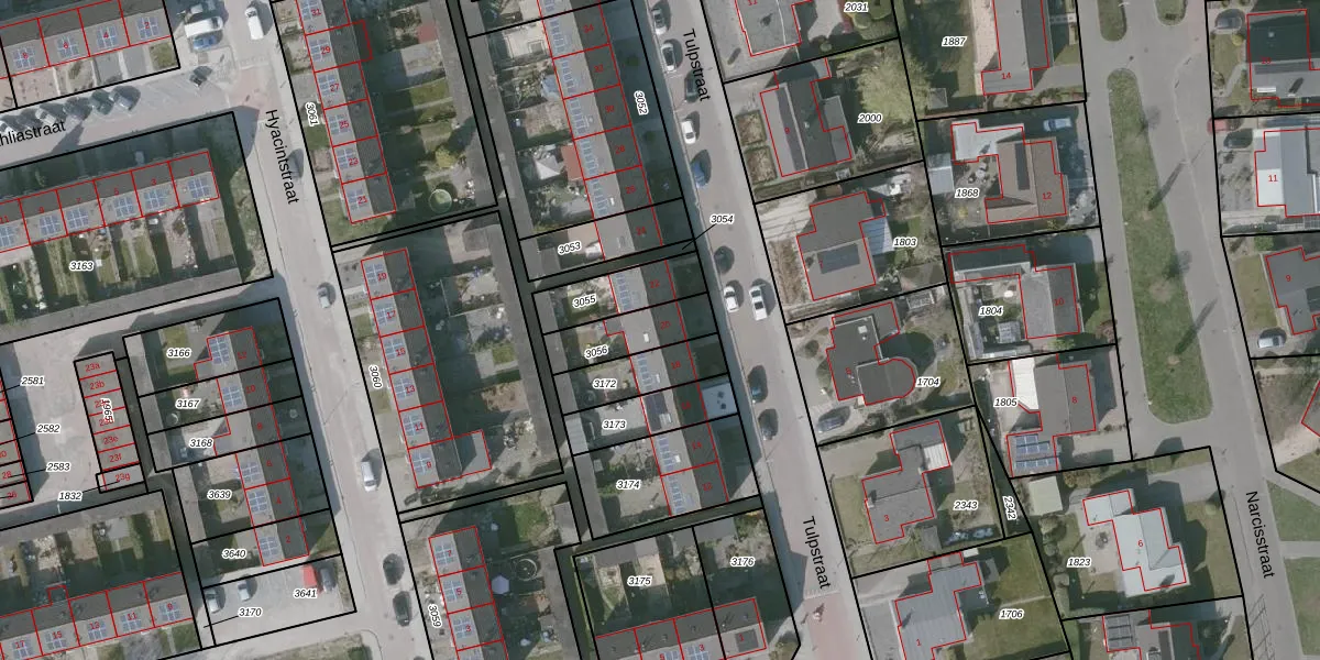 Het perceel waarop Tulpstraat 20 staat heeft een oppervlakte van 165 m². Dit is een middelgroot perceel. De perceeloppervlakte wordt geregistreerd door het Kadaster. Gedetailleerde informatie over de maten van dit perceel kunt u vinden in het rapport Kadastrale kaart met maatvoering van Tulpstraat 20.