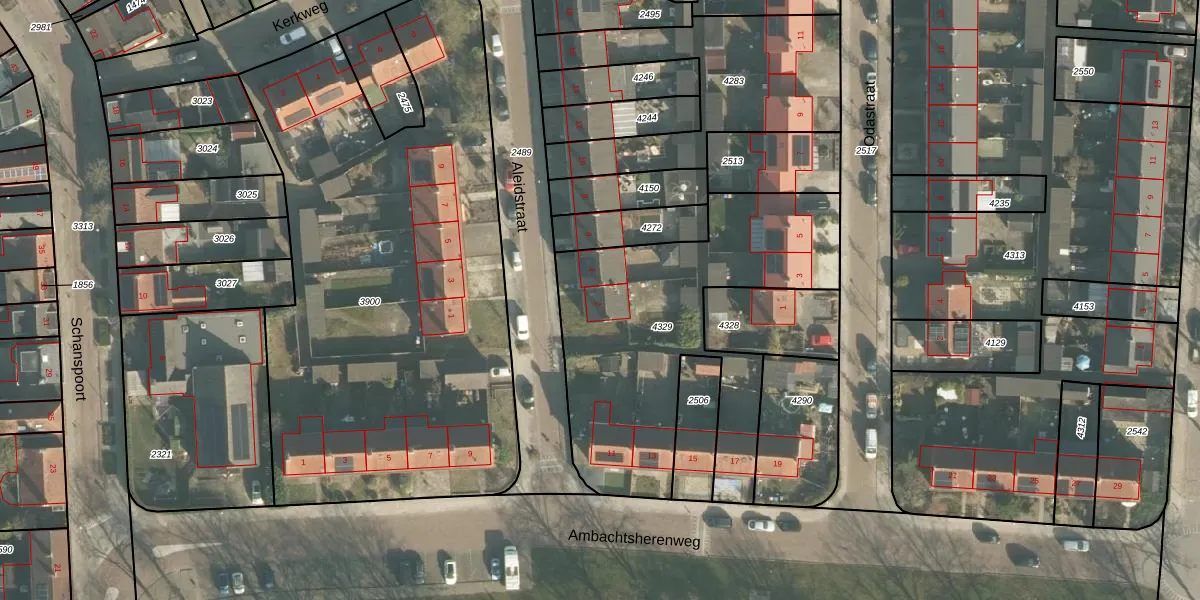 Het perceel waarop Aleidstraat 2 staat heeft een oppervlakte van 1380 m². Dit is een zeer groot perceel. De perceeloppervlakte wordt geregistreerd door het Kadaster. Gedetailleerde informatie over de maten van dit perceel kunt u vinden in het rapport Kadastrale kaart met maatvoering van Aleidstraat 2.