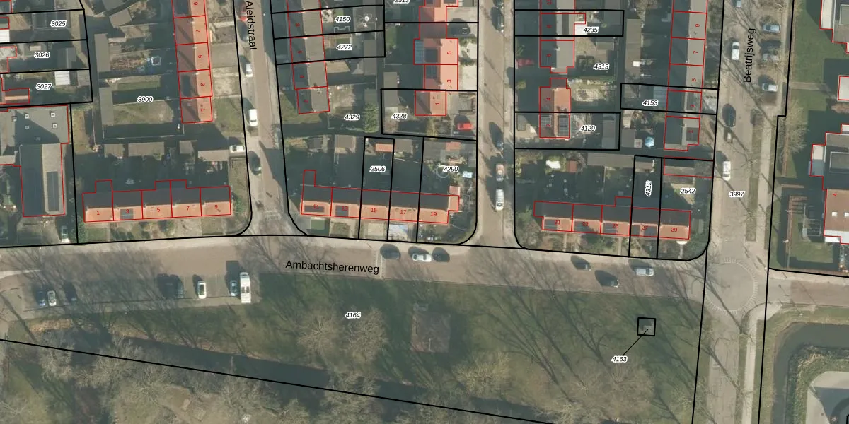 Het perceel waarop Ambachtsherenweg 19 staat heeft een oppervlakte van 325 m². Dit is een groot perceel. De perceeloppervlakte wordt geregistreerd door het Kadaster. Gedetailleerde informatie over de maten van dit perceel kunt u vinden in het rapport Kadastrale kaart met maatvoering van Ambachtsherenweg 19.