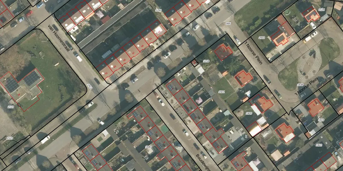 Het perceel waarop Boudewijnstraat 1 staat heeft een oppervlakte van 2435 m². Dit is een zeer groot perceel. De perceeloppervlakte wordt geregistreerd door het Kadaster. Gedetailleerde informatie over de maten van dit perceel kunt u vinden in het rapport Kadastrale kaart met maatvoering van Boudewijnstraat 1.