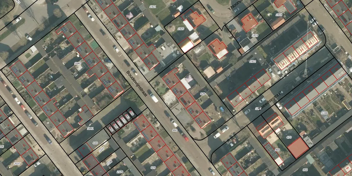 Het perceel waarop Boudewijnstraat 17 staat heeft een oppervlakte van 1165 m². Dit is een zeer groot perceel. De perceeloppervlakte wordt geregistreerd door het Kadaster. Gedetailleerde informatie over de maten van dit perceel kunt u vinden in het rapport Kadastrale kaart met maatvoering van Boudewijnstraat 17.