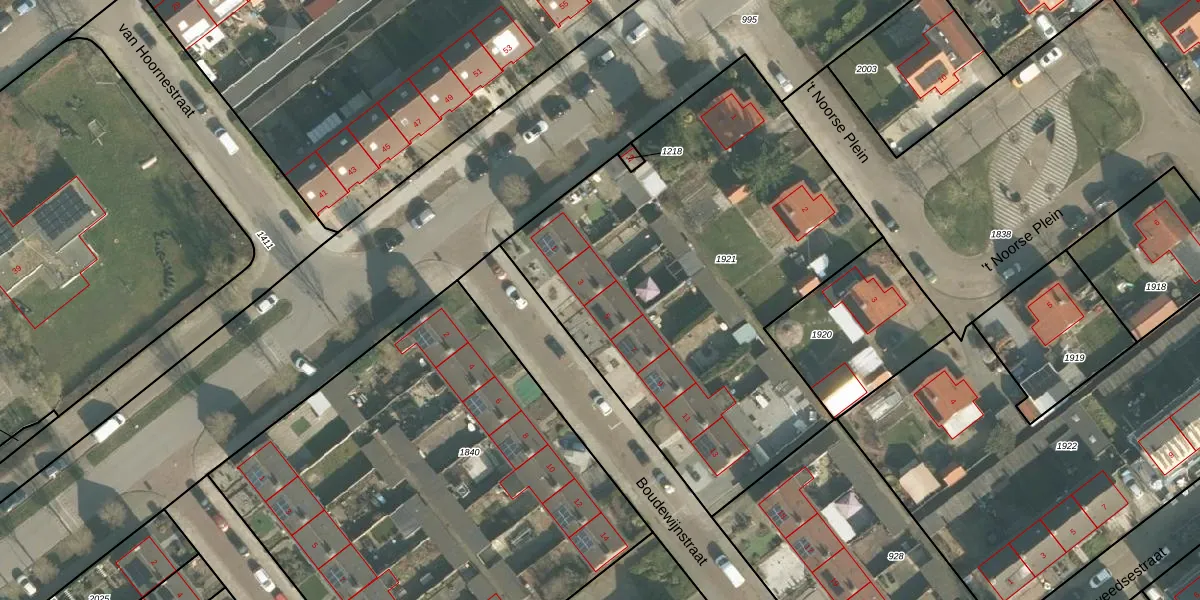 Het perceel waarop Boudewijnstraat 5 staat heeft een oppervlakte van 2435 m². Dit is een zeer groot perceel. De perceeloppervlakte wordt geregistreerd door het Kadaster. Gedetailleerde informatie over de maten van dit perceel kunt u vinden in het rapport Kadastrale kaart met maatvoering van Boudewijnstraat 5.