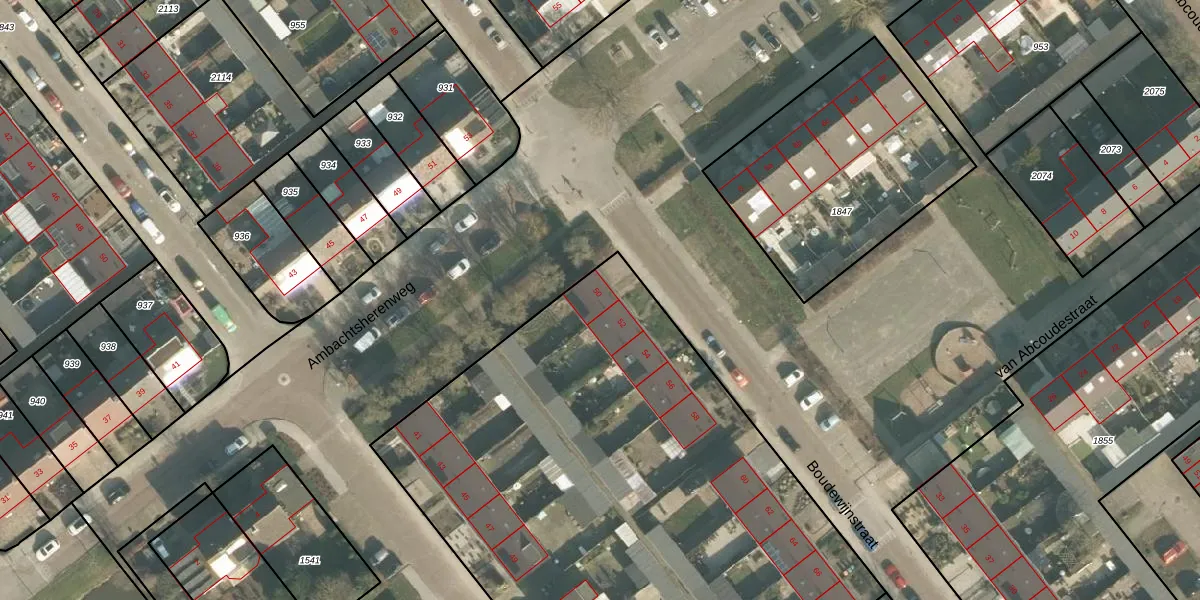 Het perceel waarop Boudewijnstraat 50 staat heeft een oppervlakte van 3625 m². Dit is een zeer groot perceel. De perceeloppervlakte wordt geregistreerd door het Kadaster. Gedetailleerde informatie over de maten van dit perceel kunt u vinden in het rapport Kadastrale kaart met maatvoering van Boudewijnstraat 50.