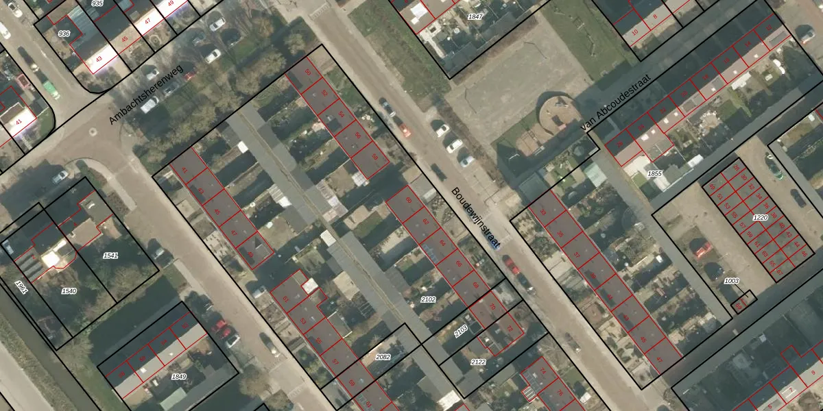 Het perceel waarop Boudewijnstraat 60 staat heeft een oppervlakte van 3625 m². Dit is een zeer groot perceel. De perceeloppervlakte wordt geregistreerd door het Kadaster. Gedetailleerde informatie over de maten van dit perceel kunt u vinden in het rapport Kadastrale kaart met maatvoering van Boudewijnstraat 60.