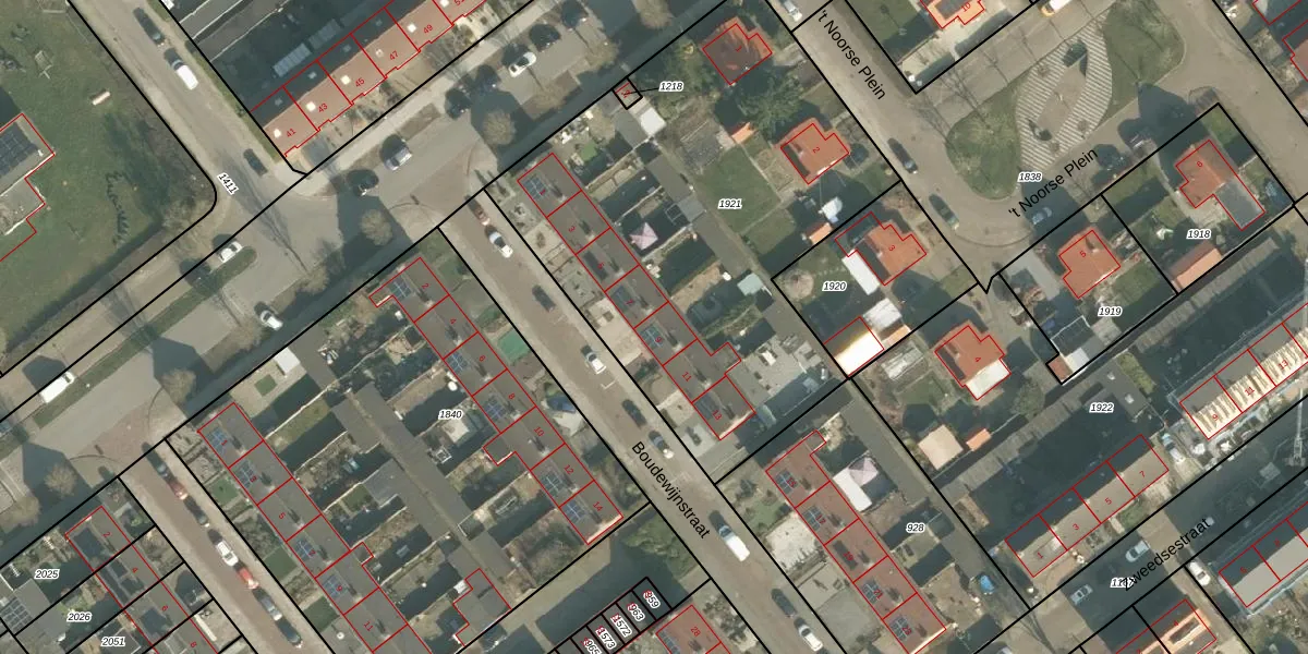 Het perceel waarop Boudewijnstraat 9 staat heeft een oppervlakte van 2435 m². Dit is een zeer groot perceel. De perceeloppervlakte wordt geregistreerd door het Kadaster. Gedetailleerde informatie over de maten van dit perceel kunt u vinden in het rapport Kadastrale kaart met maatvoering van Boudewijnstraat 9.