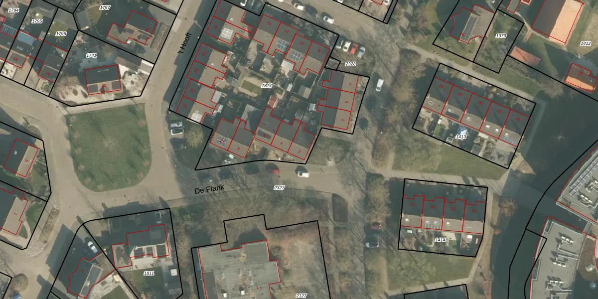 Het perceel waarop De Flank 2 staat heeft een oppervlakte van 2475 m². Dit is een zeer groot perceel. De perceeloppervlakte wordt geregistreerd door het Kadaster. Gedetailleerde informatie over de maten van dit perceel kunt u vinden in het rapport Kadastrale kaart met maatvoering van De Flank 2.
