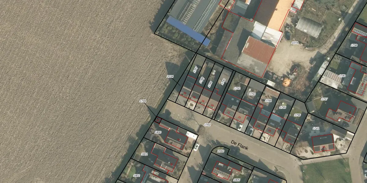 Het perceel waarop De Flank 30 staat heeft een oppervlakte van 162 m². Dit is een middelgroot perceel. De perceeloppervlakte wordt geregistreerd door het Kadaster. Gedetailleerde informatie over de maten van dit perceel kunt u vinden in het rapport Kadastrale kaart met maatvoering van De Flank 30.