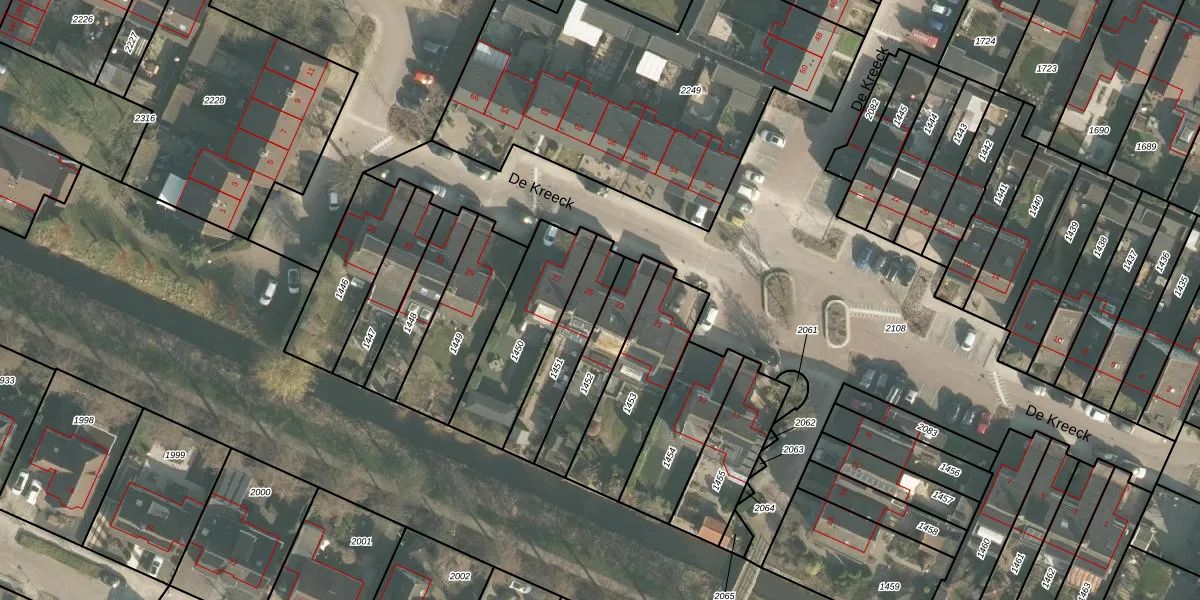 Het perceel waarop De Kreeck 25 staat heeft een oppervlakte van 221 m². Dit is een middelgroot perceel. De perceeloppervlakte wordt geregistreerd door het Kadaster. Gedetailleerde informatie over de maten van dit perceel kunt u vinden in het rapport Kadastrale kaart met maatvoering van De Kreeck 25.