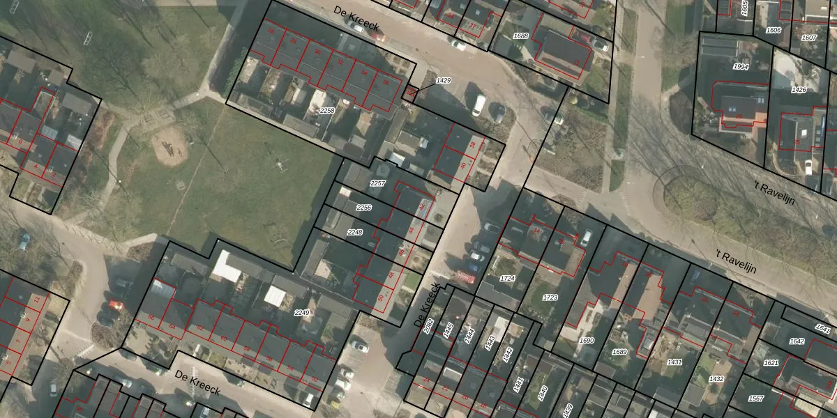 Het perceel waarop De Kreeck 42 staat heeft een oppervlakte van 245 m². Dit is een middelgroot perceel. De perceeloppervlakte wordt geregistreerd door het Kadaster. Gedetailleerde informatie over de maten van dit perceel kunt u vinden in het rapport Kadastrale kaart met maatvoering van De Kreeck 42.