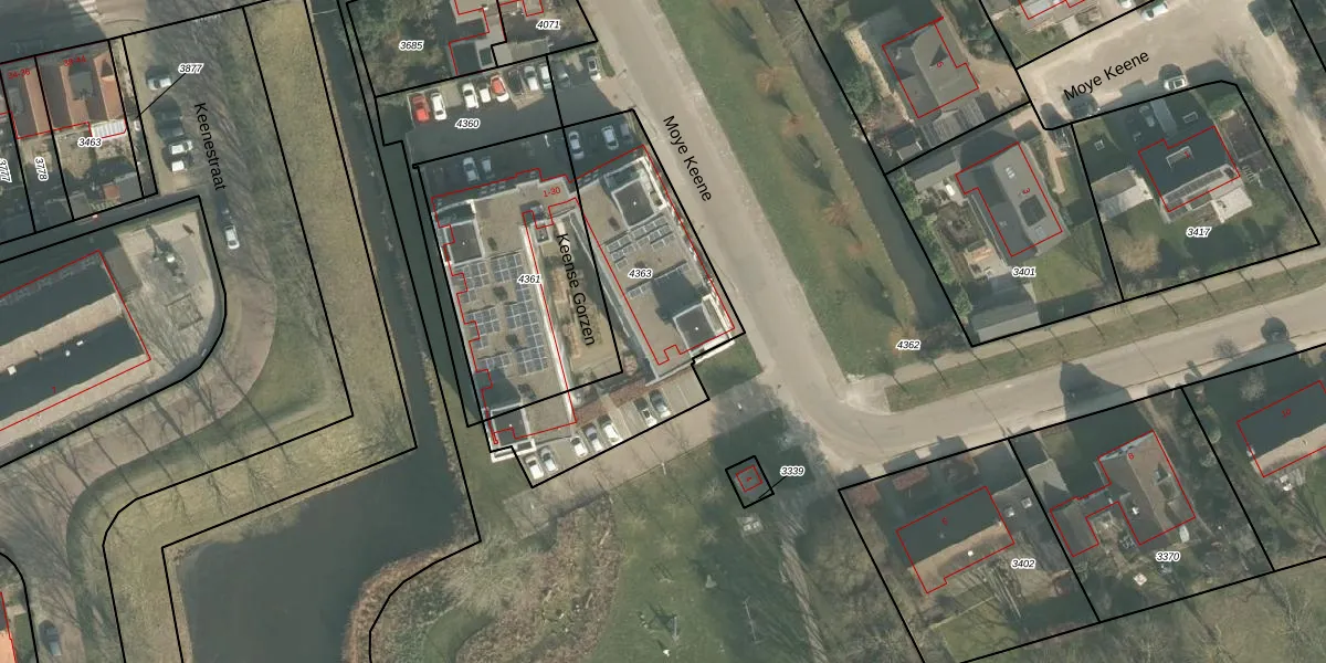 Het perceel waarop Keense Gorzen 9 staat heeft een oppervlakte van 895 m². Dit is een groot perceel. De perceeloppervlakte wordt geregistreerd door het Kadaster. Gedetailleerde informatie over de maten van dit perceel kunt u vinden in het rapport Kadastrale kaart met maatvoering van Keense Gorzen 9.