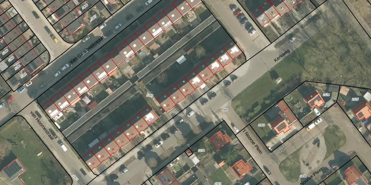 Het perceel waarop Kerkweg 59 staat heeft een oppervlakte van 5625 m². Dit is een zeer groot perceel. De perceeloppervlakte wordt geregistreerd door het Kadaster. Gedetailleerde informatie over de maten van dit perceel kunt u vinden in het rapport Kadastrale kaart met maatvoering van Kerkweg 59.