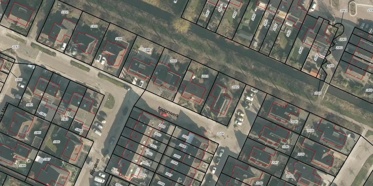 Het perceel waarop Kroonwerk 20 staat heeft een oppervlakte van 402 m². Dit is een groot perceel. De perceeloppervlakte wordt geregistreerd door het Kadaster. Gedetailleerde informatie over de maten van dit perceel kunt u vinden in het rapport Kadastrale kaart met maatvoering van Kroonwerk 20.