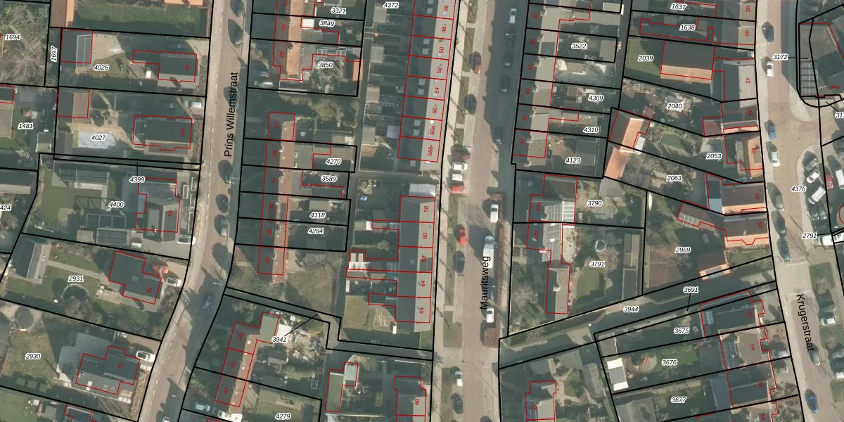 Het perceel waarop Mauritsweg 58 staat heeft een oppervlakte van 2874 m². Dit is een zeer groot perceel. De perceeloppervlakte wordt geregistreerd door het Kadaster. Gedetailleerde informatie over de maten van dit perceel kunt u vinden in het rapport Kadastrale kaart met maatvoering van Mauritsweg 58.