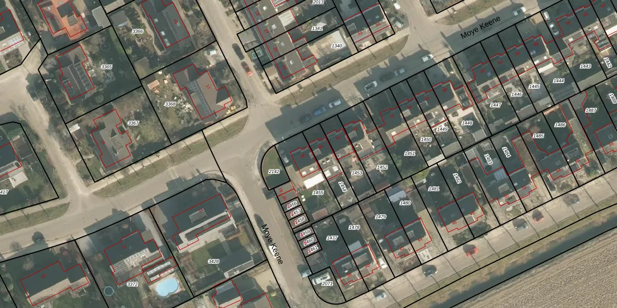 Het perceel waarop Moye Keene 66 staat heeft een oppervlakte van 351 m². Dit is een groot perceel. De perceeloppervlakte wordt geregistreerd door het Kadaster. Gedetailleerde informatie over de maten van dit perceel kunt u vinden in het rapport Kadastrale kaart met maatvoering van Moye Keene 66.