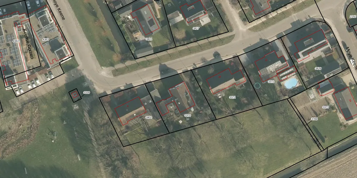 Het perceel waarop Moye Keene 8 staat heeft een oppervlakte van 817 m². Dit is een groot perceel. De perceeloppervlakte wordt geregistreerd door het Kadaster. Gedetailleerde informatie over de maten van dit perceel kunt u vinden in het rapport Kadastrale kaart met maatvoering van Moye Keene 8.