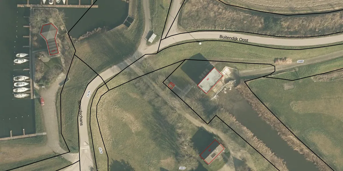 Het perceel waarop Noordschans 62-a staat heeft een oppervlakte van 2,2 ha. Dit is een zeer groot perceel. De perceeloppervlakte wordt geregistreerd door het Kadaster. Gedetailleerde informatie over de maten van dit perceel kunt u vinden in het rapport Kadastrale kaart met maatvoering van Noordschans 62-a.