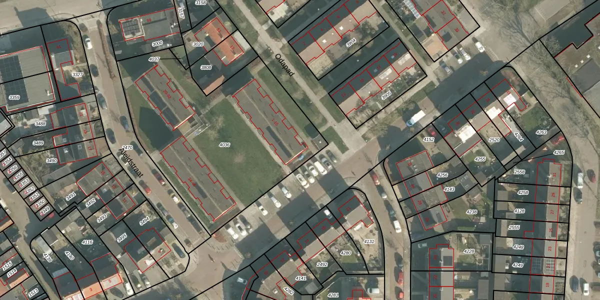 Het perceel waarop Odapad 1 staat heeft een oppervlakte van 2427 m². Dit is een zeer groot perceel. De perceeloppervlakte wordt geregistreerd door het Kadaster. Gedetailleerde informatie over de maten van dit perceel kunt u vinden in het rapport Kadastrale kaart met maatvoering van Odapad 1.