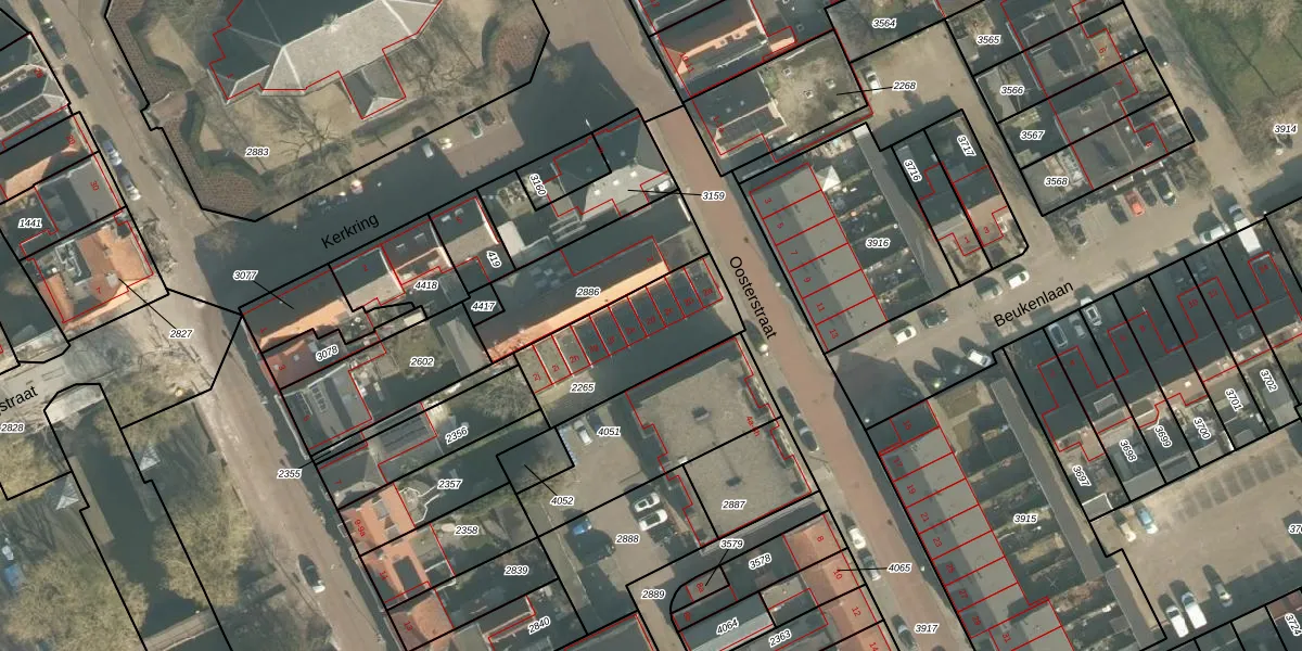 Het perceel waarop Oosterstraat 2-d staat heeft een oppervlakte van 442 m². Dit is een groot perceel. De perceeloppervlakte wordt geregistreerd door het Kadaster. Gedetailleerde informatie over de maten van dit perceel kunt u vinden in het rapport Kadastrale kaart met maatvoering van Oosterstraat 2-d.